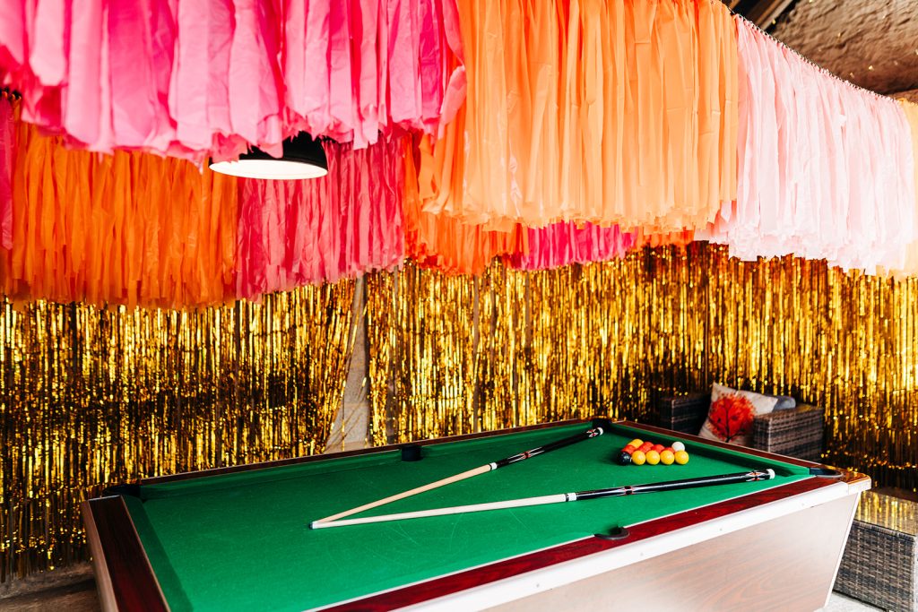 After saying ‘I do,’ you and your guests can enjoy reception drinks in the barn’s courtyard, in front of the barn or the bar area. With countryside views for miles, there are so many perfect spots to mingle, sip on a glass of bubbly, and take in the surroundings. There’s plenty of space for games in the courtyard or pool table room which can add some fun to your drinks reception.