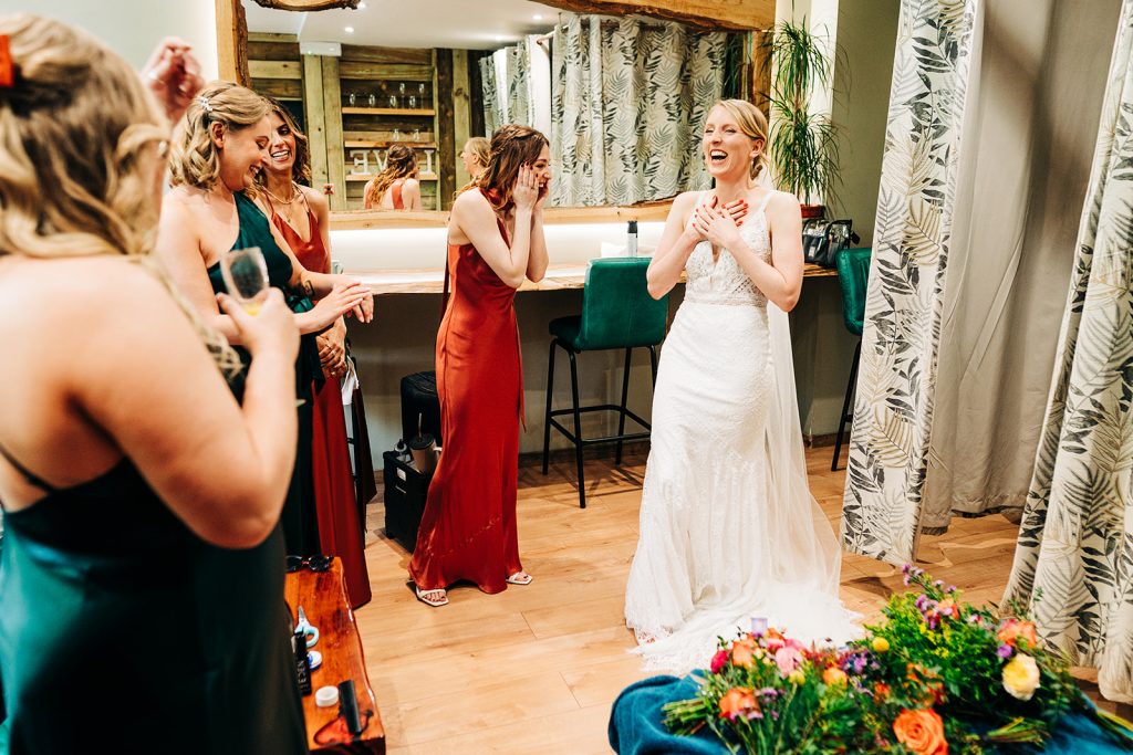 Southlands Barn offers a beautiful and spacious dressing area where you and your wedding party can get ready, pop the bubbly and get excited for the day in comfort and style! The space is light and airy, and can accommodate space for 8 people. There is also the pool table room that can be used if both of you want to get ready at the venue, however, this room is a little more basic so might be better for last minute adjustments/touch ups! If you prefer to get ready separately or away from the venue there are plenty of accommodation options nearby, including country inns, boutique hotels, and Airbnbs, ensuring you can have a relaxed morning before the celebrations begin.